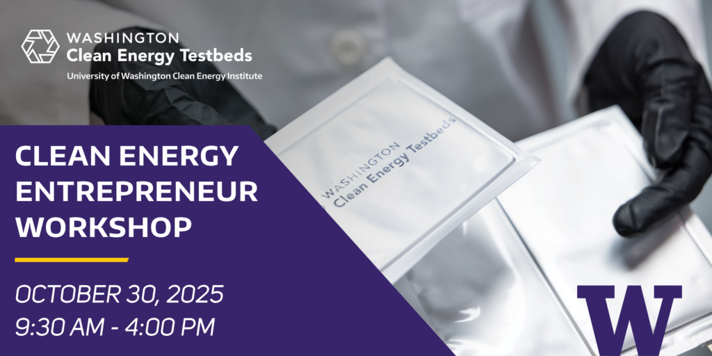 The Clean Energy Entrepreneur Workshop is designed to bring together entrepreneurs, University of Washington faculty, researchers, and students working on clean energy technologies, with industry, think tanks, and investment groups from across the Western US.